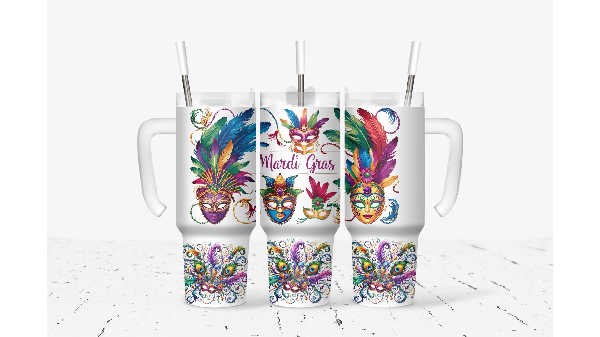 Mardi Gras Feather Mask Tumbler